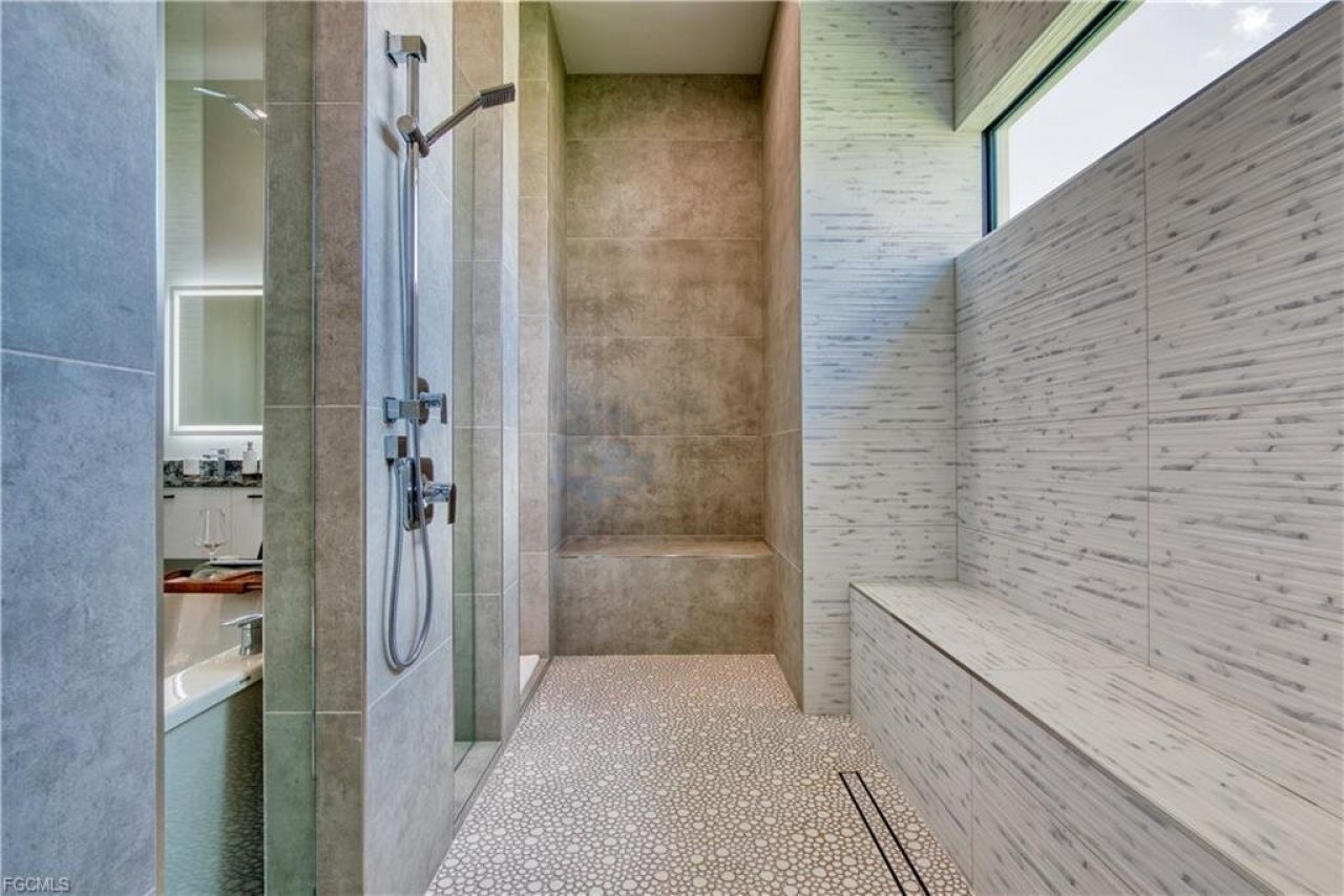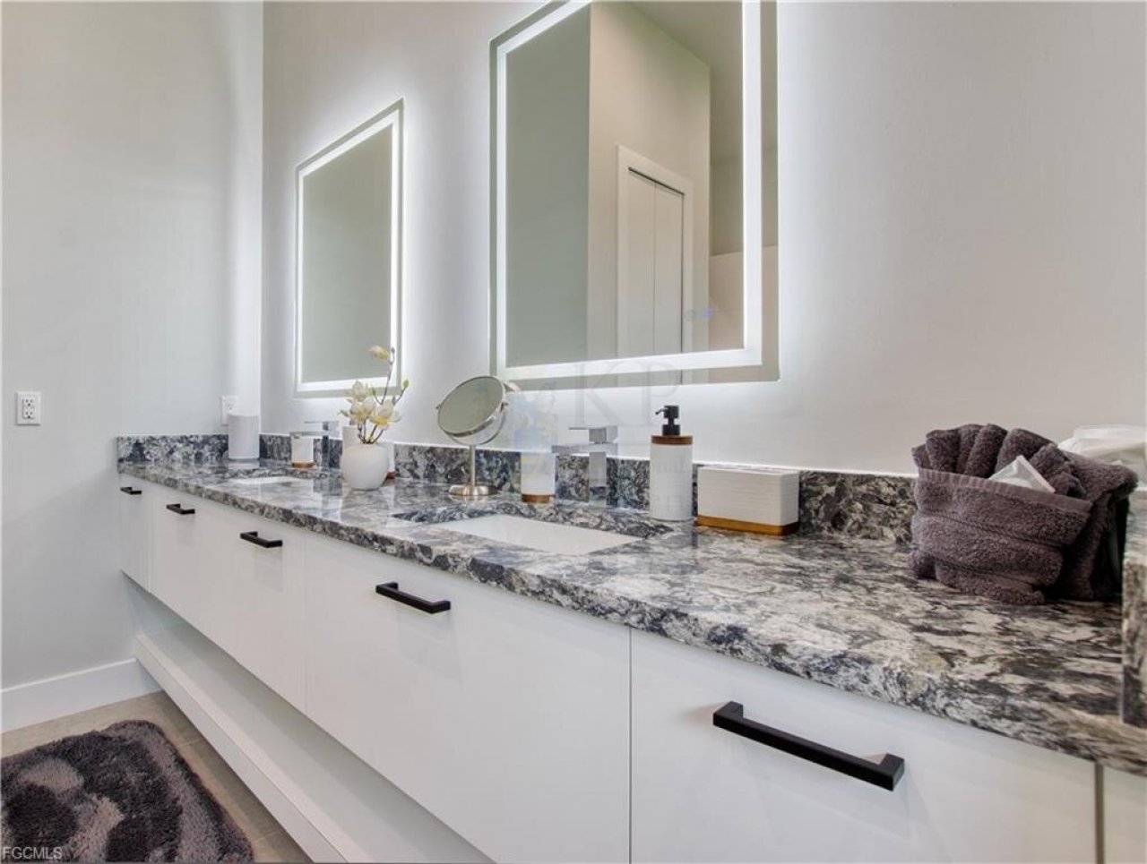 Die großzügige Master-Suite ist ein Rückzugsort für sich: mit Stufendecke, "His & Hers"-Einbauschränken, Zugang zur Lanai sowie einem luxuriösen Badezimmer mit freistehender Badewanne, großer begehbarer Dusche, Doppelwaschtisch mit Quarzoberflächen und edlem Design.