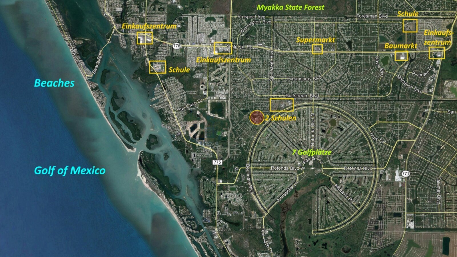 In dieser herrlichen Umgebung baut man gerne ein neues Haus, denn die Strände (Englewood Beach oder Gasparilla Island) sind nur ein paar Minuten entfernt und auch die komplette, langfristig gewachsene Infrastruktur vom nahegelegenen Ortsteil Englewood ist in 5 Minuten erreichbar.